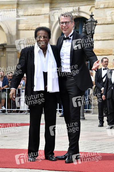 Roberto Blanco und Markus Blume bei der Eröffnung der 112. Richard-Wagner-Festspiele 2024 mit der Neuinszenierung von 'Tristan und Isolde' im Bayreuther Festspielhaus. Bayreuth, 25.07.2024