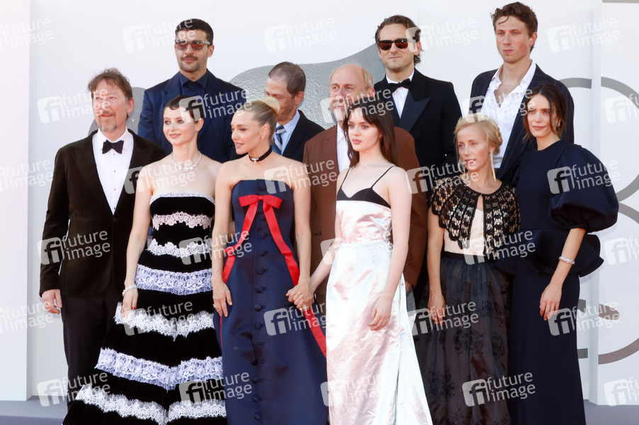 Scott Handy, Christopher Abbott, Thomasin McKenzie, Amanda Seyfried, Tim Blake Nelson, David Cale, Viola Prettejohn, Lewis Pullman, Maria Sand, Jamie Bogyo und Stacy Martin bei der Premiere des Kinofilms 'The Testament of Ann Lee' auf der Biennale di Venezia 2025 / 82. Internationale Filmfestspiele von Venedig im Palazzo del Cinema. Venedig, 01.09.2025