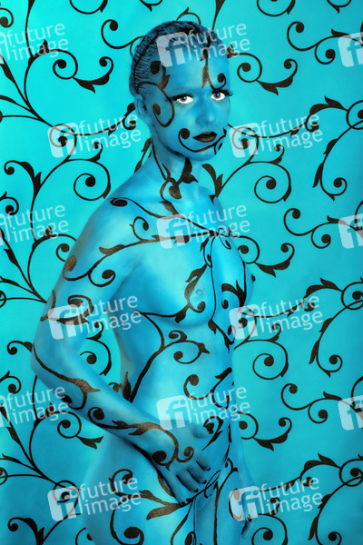 Bodypainting, Stoff, Erotik, Frau, nackt, drinnen, weiblich, Muster, erotic, woman, nude, indoor, female