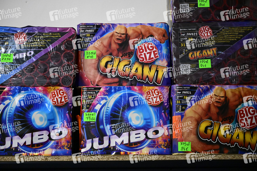 Verkauf von Feuerwerk auf dem Wochenmarkt im Deutsch-Polnischen Grenzgebiet. In Deutschland ist Feuerwerk der Kategorie 3 verboten. Wenige Tage vor dem Jahreswechsel warnen Feuerwehr und Polizei vor dem Abbrennen illegaler Pyrotechnik. Durch den unsachgemäßen Umgang mit in Deutschland nicht zugelassenem Feuerwerk können schweren Verletzungen entstehen. Denn in der Nacht zum Jahreswechsel wird immer wieder auf sogenannte Polen-Böller zurückgegriffen, die in Deutschland keine Zulassung haben. Die Zulassung von Feuerwerk unterliegt in Deutschland strengen Vorgaben, die im Sprengstoffgesetz geregelt sind. Danach dürfen nur Silvesterknaller mit einer Nettosprengmasse von maximal 6 Gramm verkauft werden. (Symbolfoto, Themenfoto) Görlitz-Zgorzelec, 29.12.2025