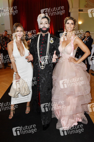 Cathy Lugner, Harald Glööckler und Micaela Schäfer bei der Präsentation der Brautmodenkollektion Pompöös by Semiha Bähr im Ballhaus Pankow. Berlin, 28.06.2019
