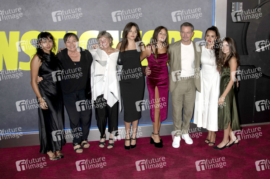 Matt Damon mit Mutter Nancy Carlsson-Paige, Ehefrau Luciana Barroso, den Töchtern Alexia Barroso, Isabella Damon, Stella Damon und Gia Damon und Gast bei der Premiere des Apple TV+ Films 'The Instigators' im Jazz at Lincoln Center. New York, 31.07.2024