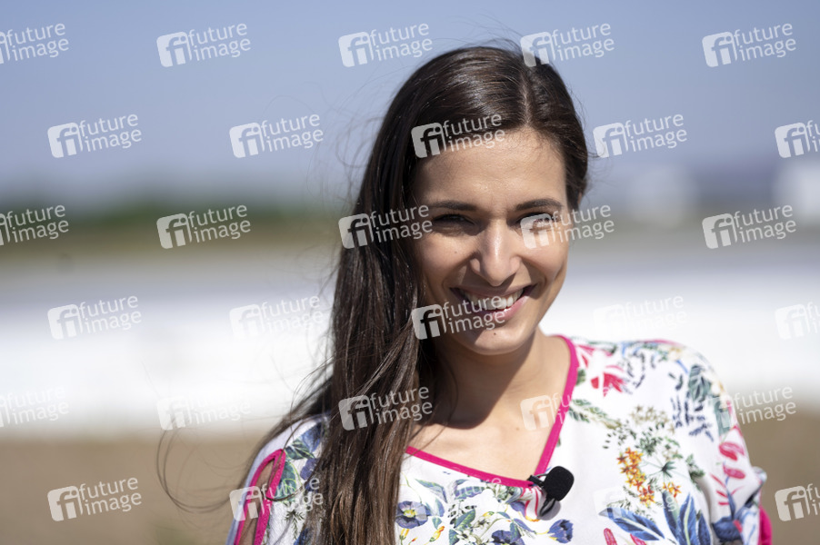 Saliha 'Sally' Özcan vom YouTube-Kanal 'Sallys Welt' während eines YouTube-Drehs beim 17. Pfälzer Spargelstich unter besonderen Bedingungen wegen der Corona-Krise. Mutterstadt, 22.04.2020
