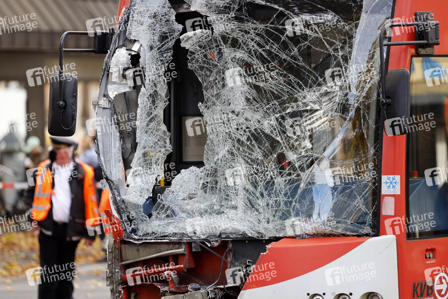 Bei einem schweren Straßenbahn-Unfall am Neumarkt zwischen zwei KVB-Zügen der Linien 1 und 7 sind 20 Menschen verletzt worden, eine Bahnfahrerin schwebt in Lebensgefahr. Als Ursache gilt derzeit eine fehlerhafte Weichenstellung. Köln, 02.11.2020