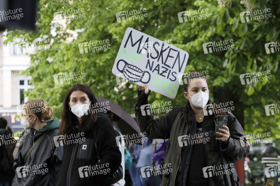 Gegendemonstranten beim Autokorso mit Abschlusskundgebung von Gegnern der Corona-Politik am Theodor-Heuss-Platz in Charlottenburg. Berlin, 21.05.2021
