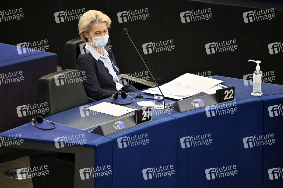 Krieg, Russland, Ukraine, Kriegsverbrechen, Europäisches Parlament, Plenum, Plenartagung, Plenardebatte, Plenarsitzung, Debatte, Rede, Politik, Strasbourg, Strassburg, Europaparlament, Europa-Politik, EU-Abgeordnete, EU-Parlament, EP, Parlament der Europäischen Union, European Parliament, European Union, Parlamentum Europaeum, MdEP, Mitglied des Europäischen Parlaments, Politikerin, Deutschland, CDU, Präsidentin der Europäischen Kommission, EU-Präsidentin
