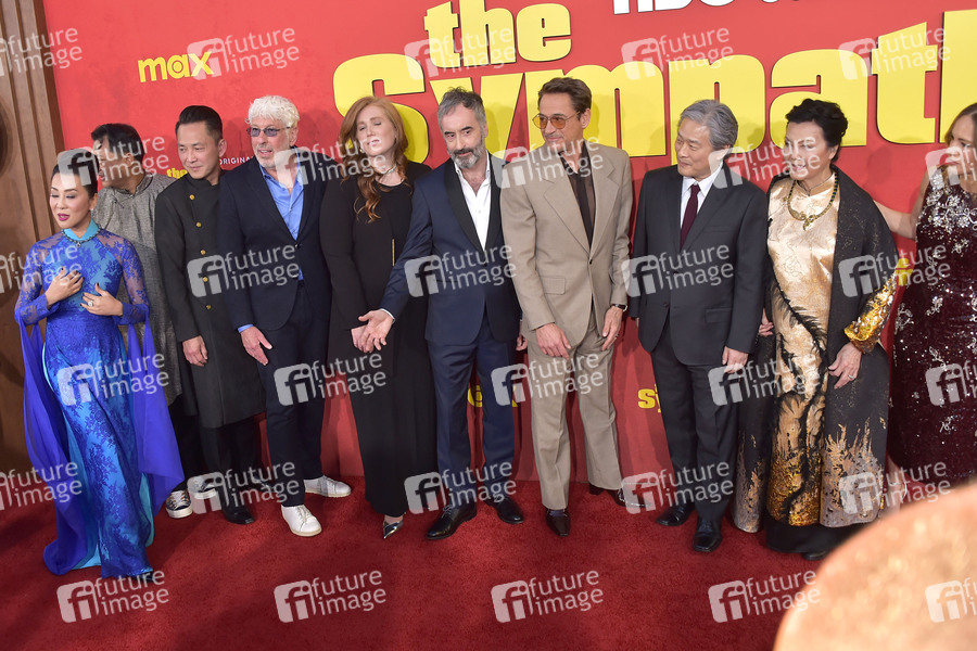 Nguyen Cao Ky Duyen, Phanxine, Viet Thanh Nguyen, Niv Fichman, Amanda Burrell, Don McKellar, Robert Downey Jr., Park Chan-wook, Kieu Chinh und Susan Downey bei der Premiere der HBO-Miniserie 'The Sympathizer' im Paramount Theater. Los Angeles, 09.04.2024