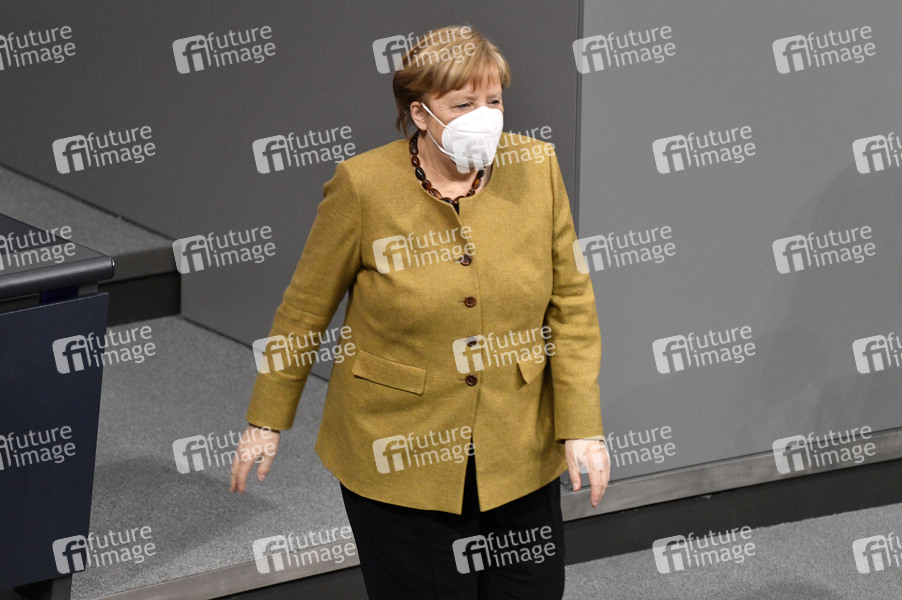 Angela Merkel in der 215. Sitzung des Deutschen Bundestages im Reichstagsgebäude. Berlin, 04.03.2021