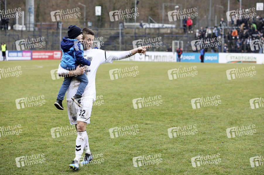 Daniel Frahn mit Sohn Leo beim Regionalliga-Spiel SV Babelsberg 03 gegen BSG Chemie Leipzig (1-0) im Karl Liebknecht Stadion. Potsdam, 02.02.2020
