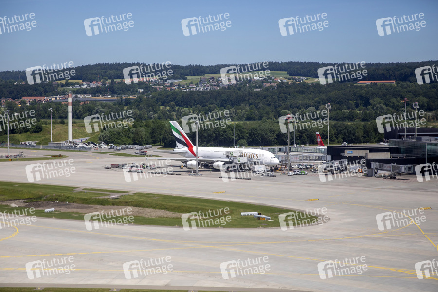 Emirates Airbus A380-800 am Flughafen Zürich, 15.08.2019