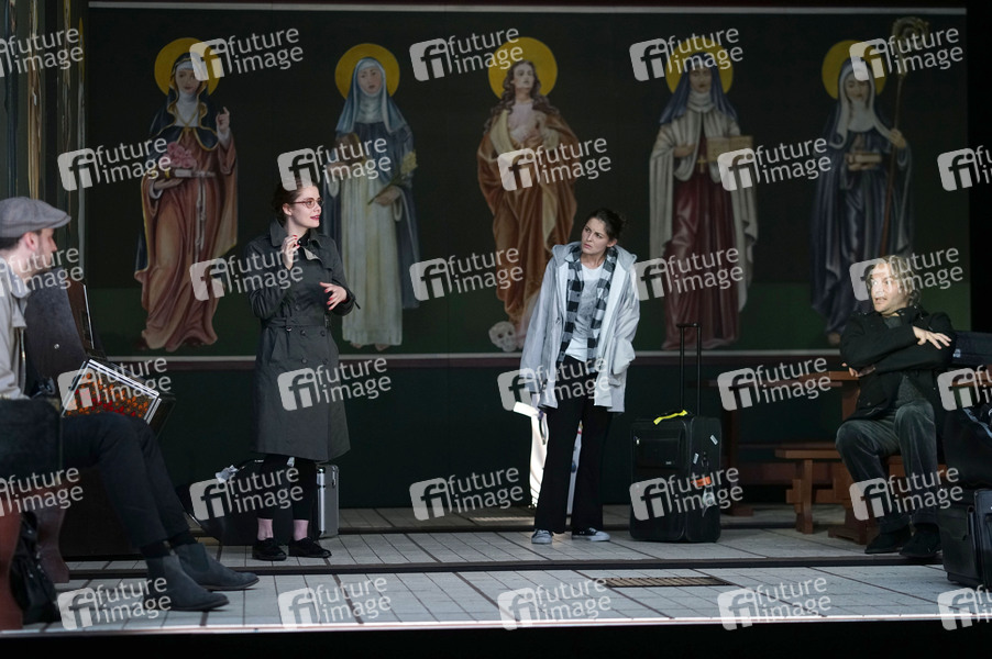 Marcel Kohler, Linn Reusse, Lorena Handschin und Felix Goeser bei der Fotoprobe des Theaterstücks 'Zdeněk Adamec' im Deutschen Theater. Berlin, 19.10.2020