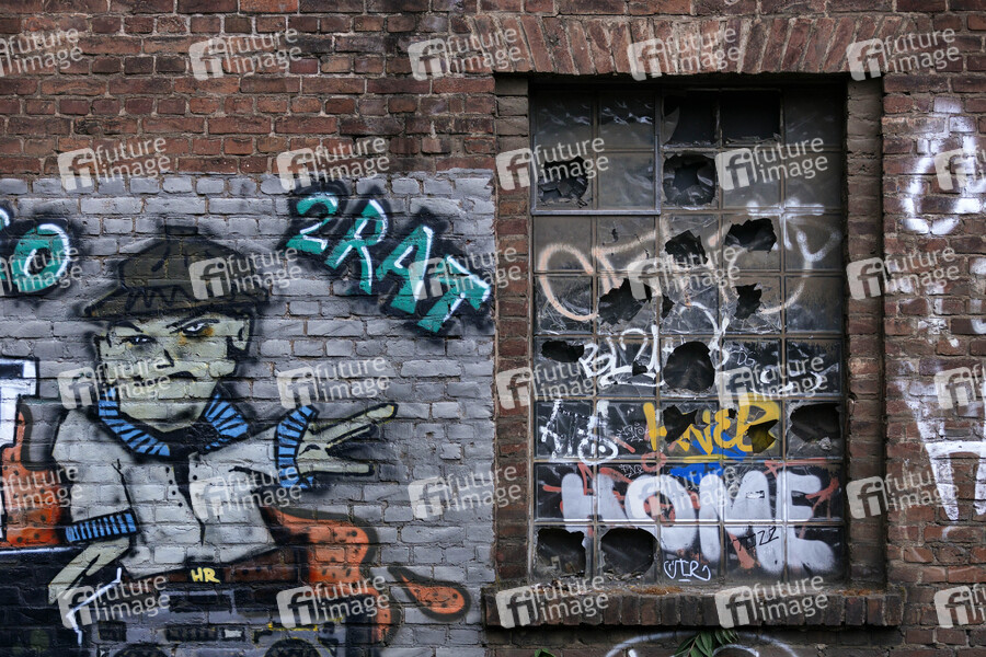 Lagerhalle, Graffiti, Fensterscheiben, eingeworfene Fenster, Ruine, heruntergekommen, Anarchie, Sachschaden, Vandalismus, Vandalentum, mutwilige Zerstörung, Sachbeschädigung, Problemviertel, Brennpunkt, Ghetto, Getto, Gettoisierung, Ghettoisierung, No-Go-Area, No-Go-Areas, Sozialer Brennpunkt, soziale Kälte, Kriminalität, Problembezirk, Verelendung, Elendsviertel, Prekariat, Armut, Milieu, Verwahrlosung, Innere Sicherheit, Sozialpolitik, Angstzone, Angstraum, Schutzgeld, Versicherungsschaden, Gebäudeversicherung, Versicherungsbetrug, Einbruch, Haftpflichtversicherung, Glasbruch, Glasversicherung, Glasschaden, Glasschäden, Schutzgeldmafia, Verfall, Unordnung, Broken-Windows-Theorie, zerbrochene Fensterscheibe, Parallelgesellschaft, Parallelgesellschaften, soziale Frage, eingeworfenes Fenster, Schadensmeldung, Fenster, Fensterglas, Glaser, Symbolbild, Symbolfoto