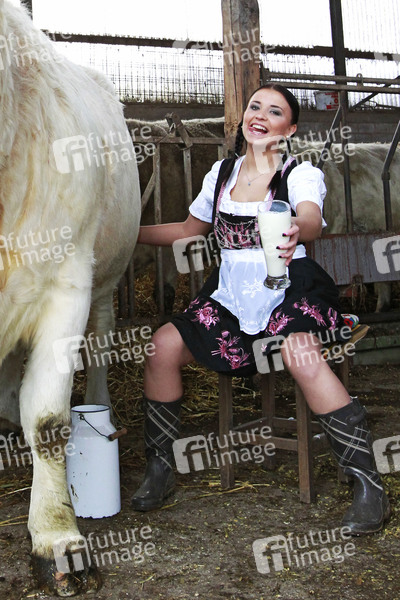 SOLsnap Cover-Model Januar 2013, Tier, Kuh, Milch, melken, Dirndl