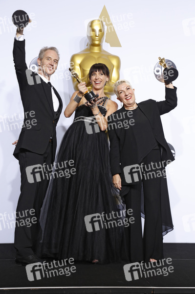 Damian Martin, Elka Wardega und Lesley Vanderwalt im Presseraum der Oscar Verleihung 2016 / 88th Academy Awards im Loews Hollywood Hotel. Los Angeles, 28.02.2016