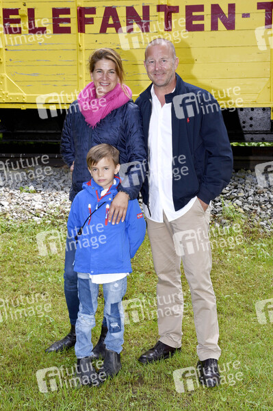 Heino Ferch mit Ehefrau Marie-Jeanette und Sohn Gustav Theo Cian beim Presserundgang auf der Circus Krone-Farm. Weßling, 29.06.2020