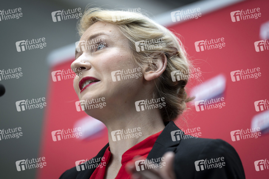 Ines Schwerdtner bei einem Pressestatement der Partei Die Linke im Reichstagsgebäude. Berlin, 12.03.2025