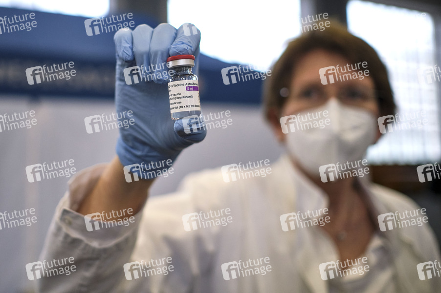 Impfstoff AstraZeneca beim Start der Impfungen für Einsatzkräfte aus den geschlossenen Einsatzeinheiten der Zentralen Polizeidirektion Niedersachsen (ZPD) in der Tannenbergallee. Hannover, 04.03.2021