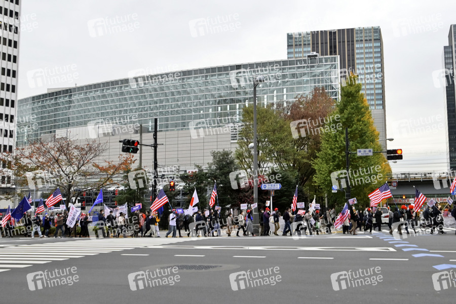 Demo, Demonstration, Demonstranten, Politik, Protest, Protestzug, US-Wahl, angebliche Wahlmanipulation, Politik, USA, Japan, Tokyo