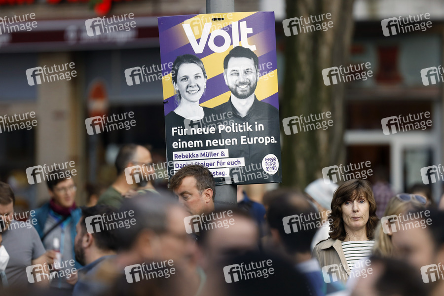 Politik, Bundestagswahl, Wahl, Wahlkampf, Partei, Wahlkampfveranstaltung, Parteienwerbung, Kandidat, Kandidatin, Kampagne, Wahlen, Wahlkampagne, Wahlkampftour, Wahlkampfauftritt, Bundestagswahlkampf, Bundestagswahl, Bundestagswahlen, Wahlplakat, Wahlbeteiligung, Erststimme, Zweitstimme, Kleinstparteien, 5-Prozent-Hürde, EU-Politik, Verkehrspolitik, Umwelt, Volt, Partei, Europa, Europapolitik