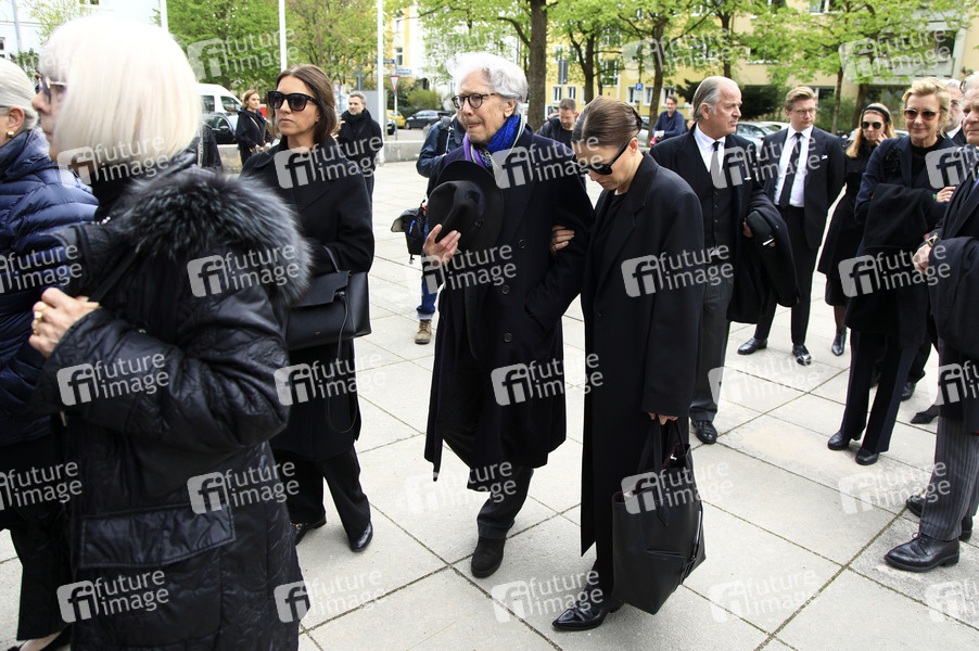 Sarah Lena Herzsprung, Bernd Herzsprung und Hannah Herzsprung bei der Trauerfeier für Fritz Wepper in der Herz Jesu Kirche in München-Neuhausen. München, 10.04.2024
