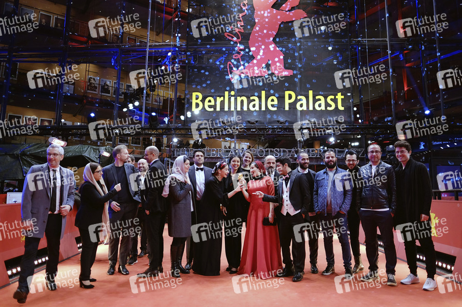 Baran Rasoulof mit Cast und Team des Gewinnerfims 'Sheytan vojud nadarad / There Is No Evil /Es gibt kein Böses' bei der Closing Ceremony mit Preisverleihung auf der Berlinale 2020 / 70. Internationale Filmfestspiele Berlin im Berlinale Palast. Berlin, 29.02.2020