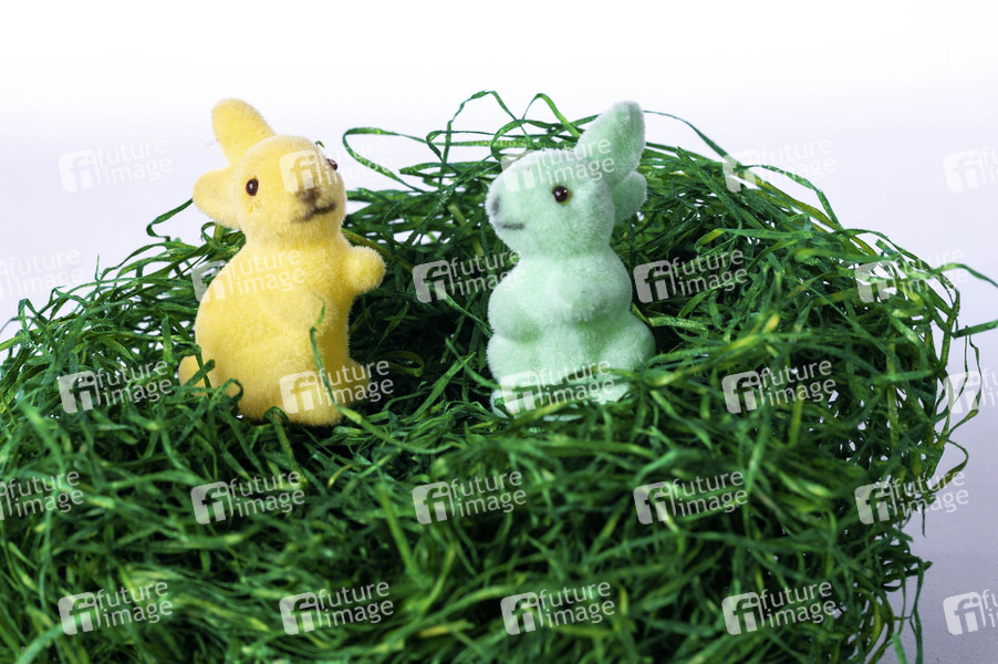 Osterhasen aus Filz in einem Osternest. (Symbolfoto, Themenfoto)