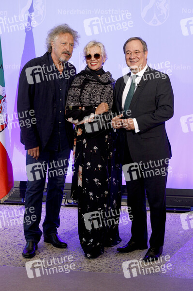 Wolfgang Niedecken mit Ehefrau Tina und Armin Laschet bei der Verleihung des Staatspreises des Landes Nordrhein-Westfalen 2019 an Klaus Töpfer im WCCB. Bonn, 16.09.2019