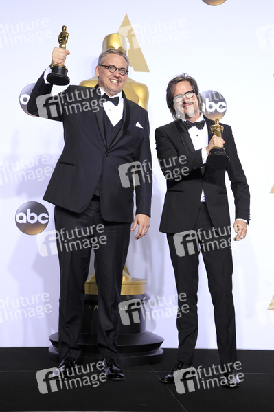 Adam McKay und Charles Randolph (Bestes adaptiertes Drehbuch 'The Big Short') im Presseraum der Oscar Verleihung 2016 / 88th Academy Awards im Loews Hollywood Hotel. Los Angeles, 28.02.2016