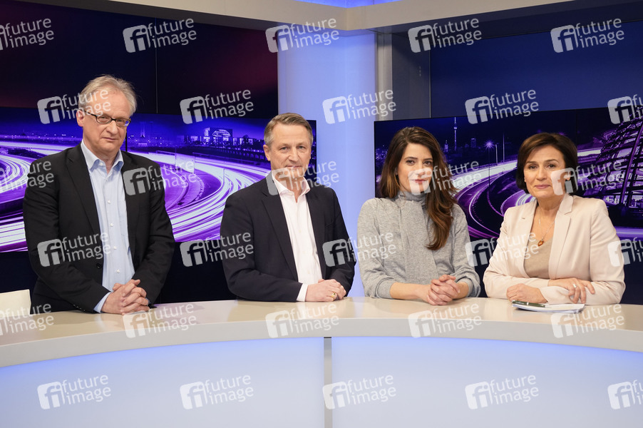 Albrecht von Lucke, Nikolaus Blome, Linda Zervakis und Sandra Maischberger in der ARD-Talkshow 'maischberger' im Studio Berlin Adlershof. Berlin, 22.01.2025