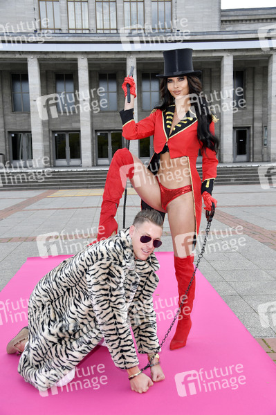 Calvin Kleinen und Micaela Schäfer bei der Generalprobe für das Opening der 27. Venus Berlin vor dem Haupteingang Nord der Messe Berlin. Berlin, 07.10.2024