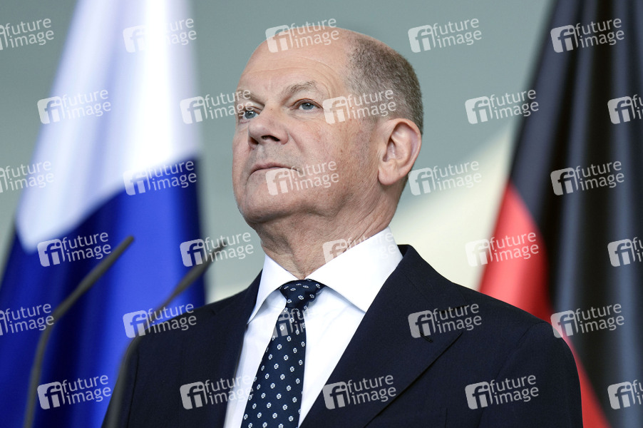 Olaf Scholz beim Empfang des Präsidenten der Republik Finnland zu einem gemeinsamen Gespräch mit anschließendem Pressestatement im Bundeskanzleramt. Berlin, 08.05.2024