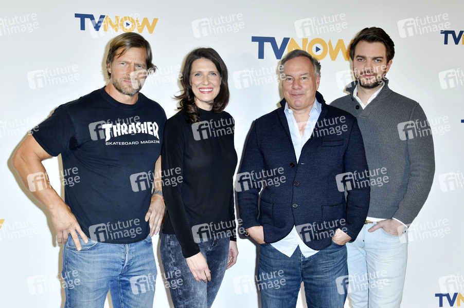 Henning Baum, Veronica Priefer, Nico Hofmann und Johannes Kunkel beim Fototermin zum TV NOW-Salongespräch 'Fiction Ausblick 20/21' im Soho House. Berlin, 19.02.2020