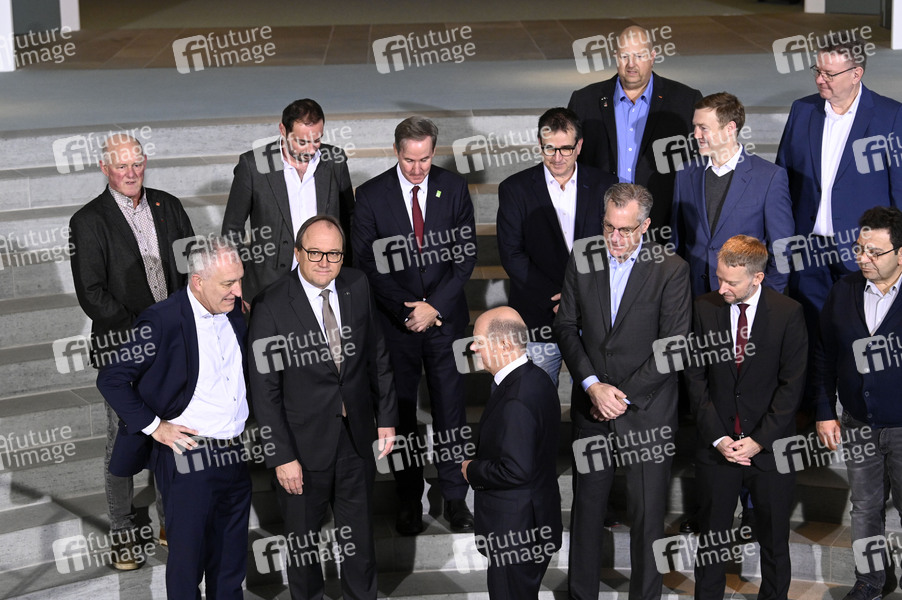 Olaf Scholz beim Treffen des Bundeskanzlers mit Vertretern der Stahlbranche sowie von Gewerkschaften und Betriebsräten im Bundeskanzleramt. Berlin, 09.12.2024