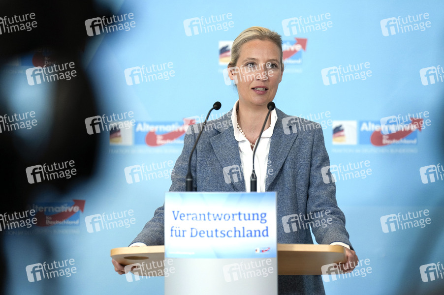 Politik, Statement, Pressekonferenz, PK, Reichstag, Deutscher Bundestag, Demokratie, Parlament, Parlamentsgebäude, Volksvertreter, MdB, Mitglied des Bundestages, Abgeordnete, Politikerin, Vorsitzende der AfD-Bundestagsfraktion