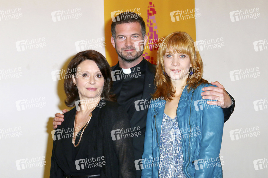 Tamara Rohloff, Simon Boeer und Annika Ernst beim Fototermin am Set der ZDF Fernsehserie 'Herzenbrecher - Vater von vier Söhnen' in der Kartäuserkirche. Köln, 06.05.2014