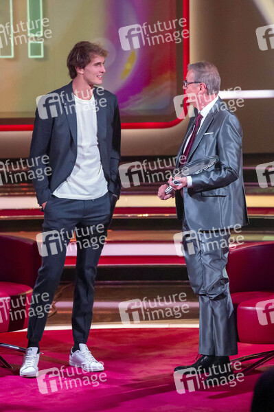 Alexander Zverev und Günther Jauch in der RTL-Live-Show '2021! Menschen, Bilder, Emotionen' in den Nobeo Studios. Hürth, 05.12.2021
