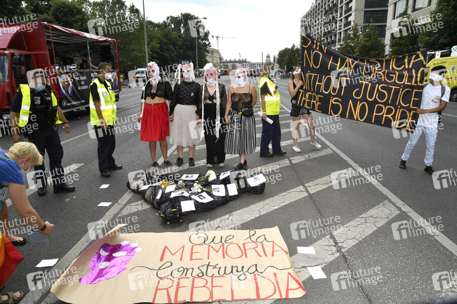 Demonstrationszug mit dem Motto 'Berlin Pride 2020' vom Nollendorfplatz über Potsdamer Straße, Wilhelmstraße und Unter den Linden zum Alexanderplatz. Berlin, 27.06.2020