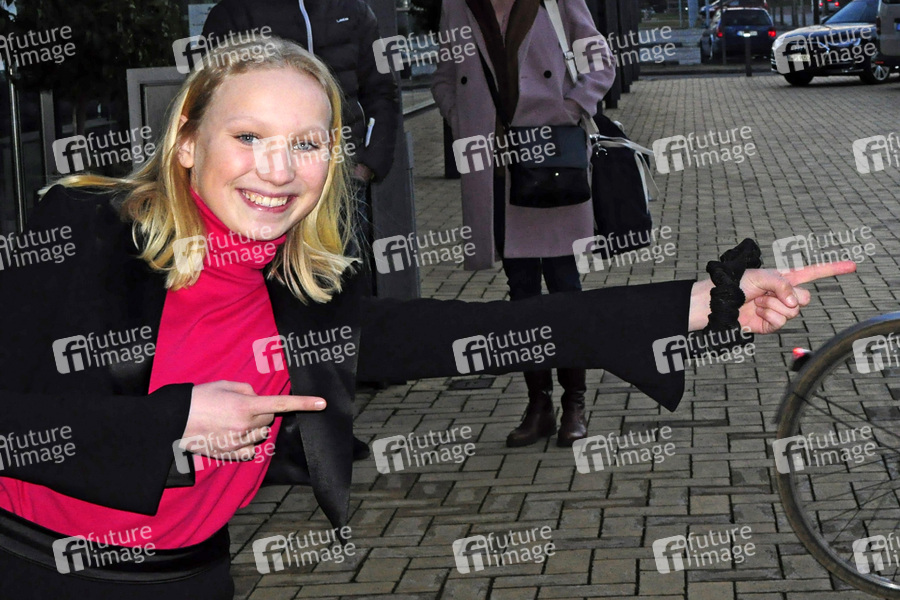 Helena Zengel bei der Ankunft zur Aufzeichnung der MDR-Talkshow 'Riverboat' im Studio 3 der Media City Leipzig. Leipzig, 05.03.2021