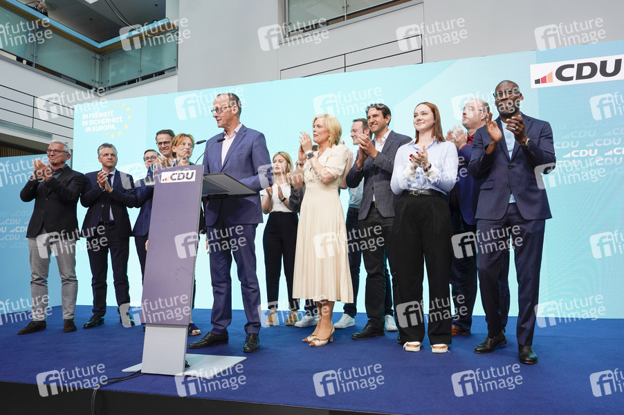Friedrich Merz mit Parteikollegen beim Wahlabend der CDU nach der Europawahl im Konrad-Adenauer-Haus. Berlin, 09.06.2024