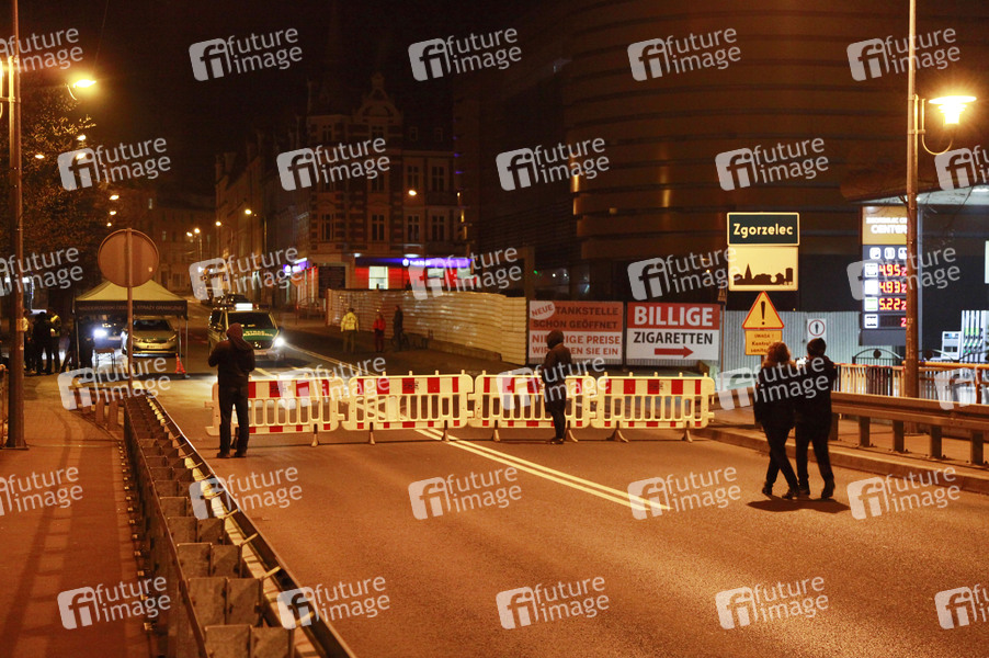 Um Mitternacht schließt Polen wegen der Corona-Krise die Grenze für Ausländer an der Stadtbrücke zwischen Görlitz und Zgorzelec. Görlitz, 15.03.2020