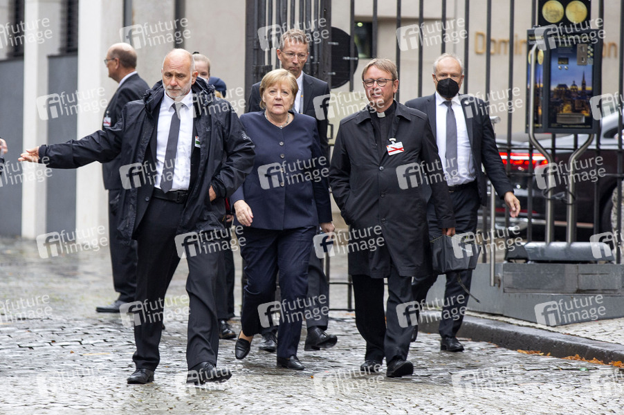 Angela Merkel und Karl Jüsten beim ökumenischen Gottesdienst für die Opfer der Flutkatastrophe im Hohen Dom zu Aachen. Aachen, 28.08.2021