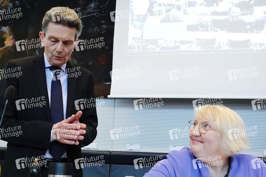 Rolf Mützenich und Katja Mast bei der Fraktionssitzung der SPD-Bundestagsfraktion im Reichstagsgebäude. Berlin, 02.07.2024