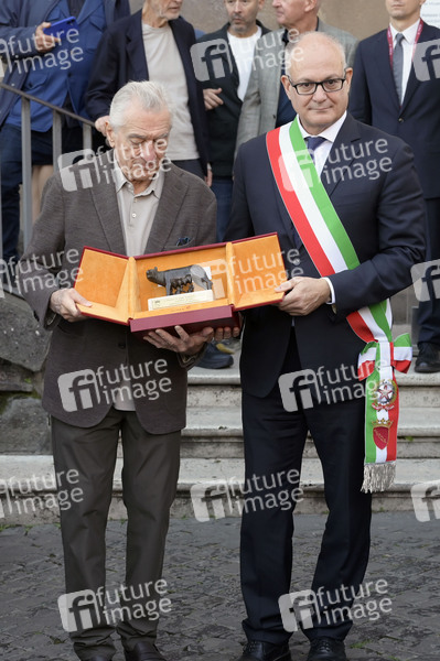 Robert de Niro und Roberto Gualtieri nach der Verleihung des Lupa Capitolina auf dem Kapitolsplatz. Rom, 06.11.2025