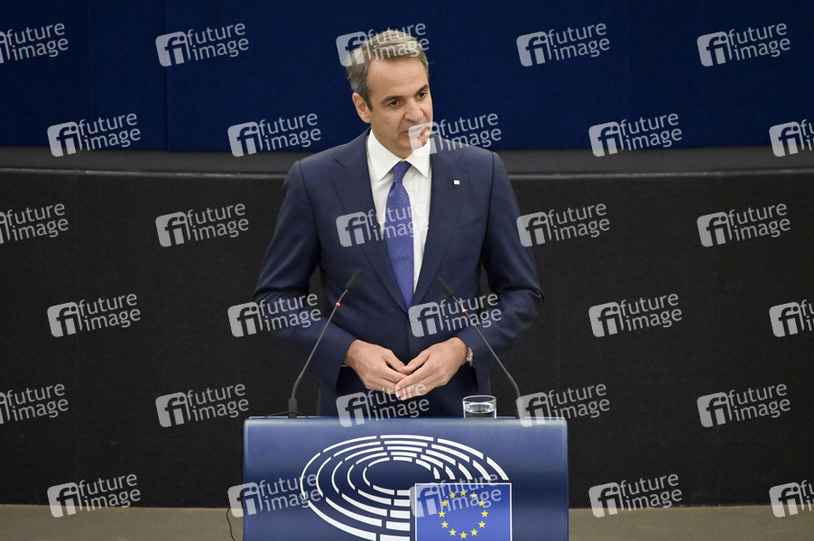 Kyriakos Mitsotakis spricht vor dem Parlament im Plenarsaal des Europäischen Parlaments. Straßburg, 05.07.2022