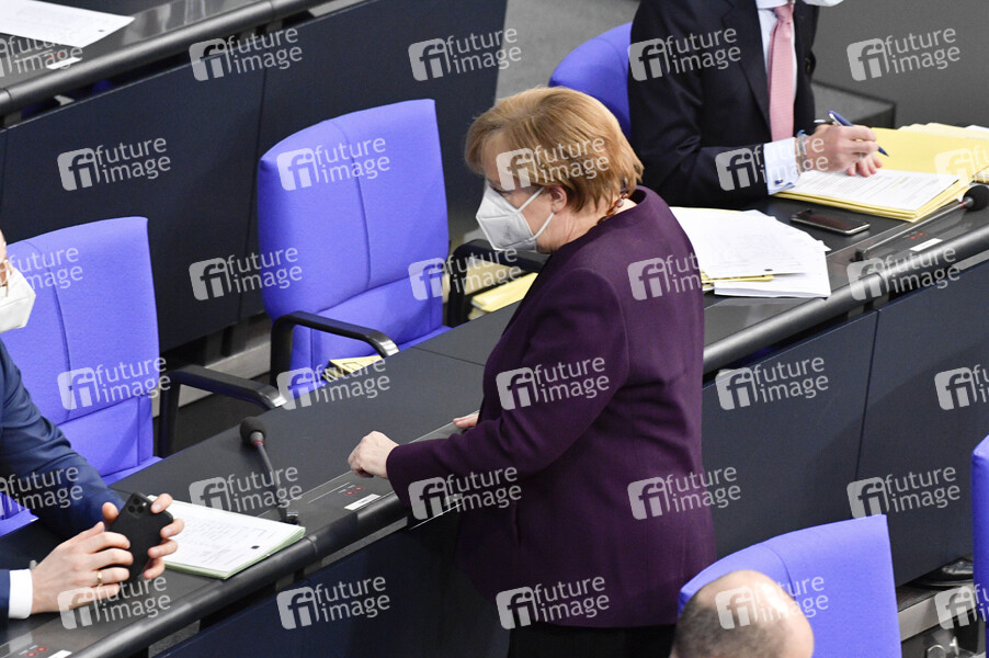 Angela Merkel in der 205. Sitzung des Deutschen Bundestages im Reichstagsgebäude. Berlin, 27.01.2021