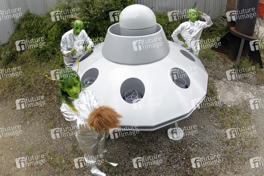 GEEK ART - Bodypainting and Transformaking: UFO Photoshooting mit Paul Skupin, Enrico Lein und Maria Skupin als Außerirdische nach einer Landung auf einem Industriegelände auf dem Planeten Erde in Bakede. - Ein Projekt des Fotografen Tschiponnique Skupin und des Bodypainters und Transformakers Enrico Lein