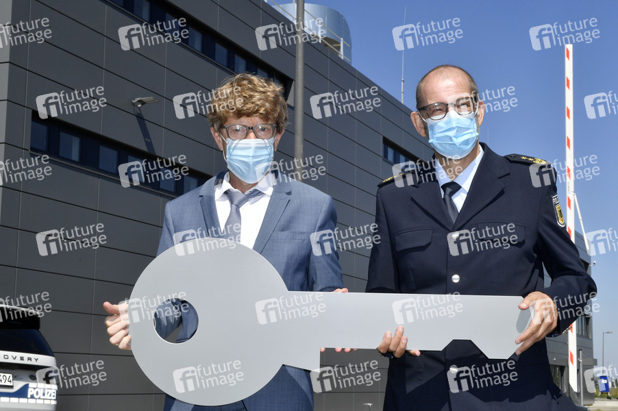 Engelbert Lütke Daldrup, Vorsitzender der Geschäftsführung der Flughafen Berlin Brandenburg GmbH, und Karl-Heinz Weidner, Präsident der Bundespolizeidirektion Berlin beim Fototermin anlässlich der Fertigstellung des Dienstgebäudes der Bundespolizei am Flughafen Berlin Brandenburg. Schönefeld, 31.07.2020