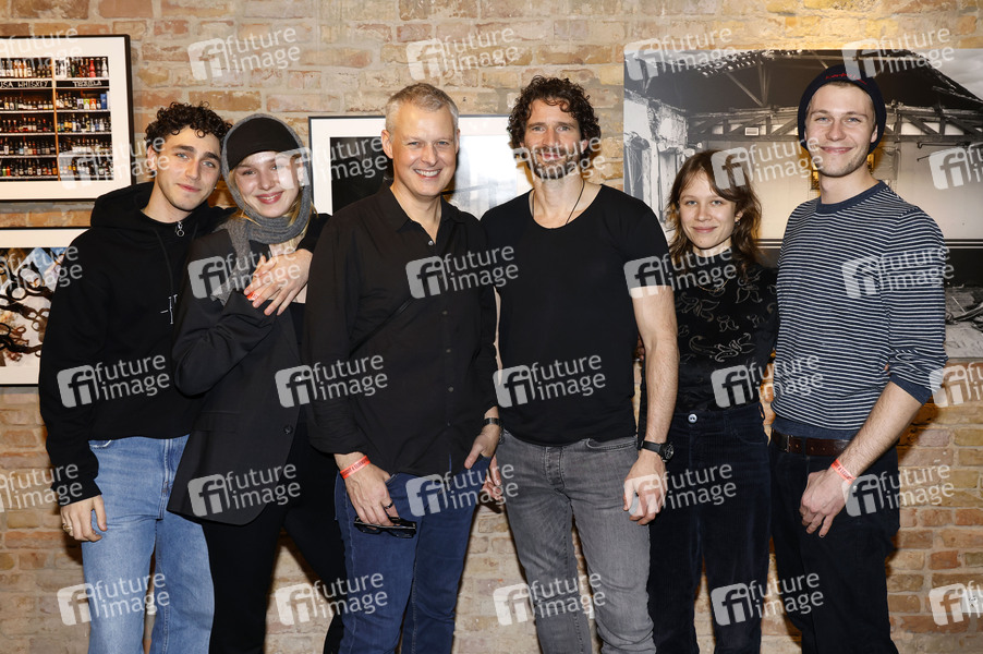Riccardo Campione, Jule Hermann, Florian Froschmayer, Arne Friedrich, Anna Bachmann und Richard Kreutz bei der Eröffnung der Fotoausstellung 'Zuversicht und Lebensfreude' der Fotografen Florian Froschmayer & Arne Friedrich in der Stay Curious Media Gervinusstrasse 12. Berlin, 10.01.2025