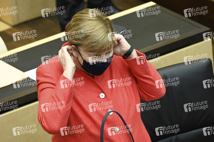 Politikerin, CDU, Bundeskanzlerin der Bundesrepublik Deutschland, Sitzung, Regierung, Deutscher Bundesrat, Debatte, Sitzung, Rede, Plenum, Politik, Verfassungsorgan der Bundesrepublik Deutschland, Gesetzgebung und Verwaltung des Bundes, Mitglieder der Landesregierungen, Preußisches Herrenhaus, Corona, Coronamaßnahmen, Corona-Schutzmaßnahmen, Atemschutz, Atemschutzmaske, Virenschutz, Schutzmaske, Mundschutzpflicht, Maskenpflicht, Mundschutz-Pflicht, Mund-Nase-Schutz, Mund-Nasen-Schutz, MNS