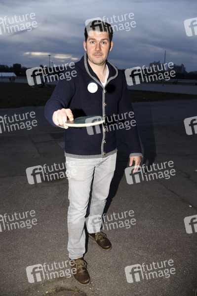 Max Kronseder (DeSchoWieda) beim Videodreh zum Lied 'Radlg'fahrn und G'schmissn' der Guten A-Band im Bavariapark und auf der Theresienwiese. München, 26.03.2021
